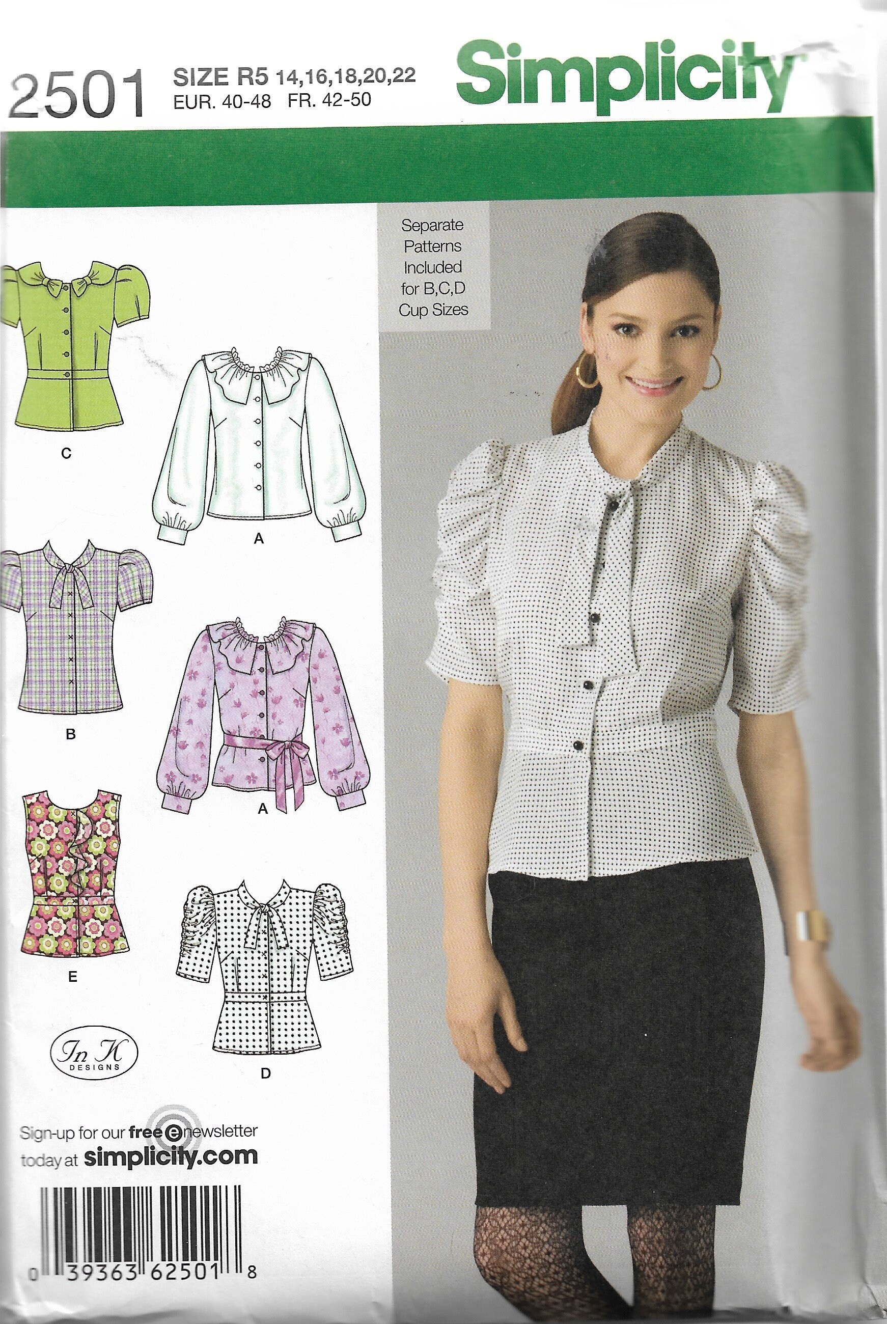 Web 575 Simplicity 2501 Misses size H5 6-8-10-12-14 R5 14-16-18-20-22 Blouses -- separate patterns included for B C D cup sizes. Web New sewing pattern from Simplicity 2501 to make misses button front blouse with optional tie shaped or ruffle collar and sleeve variations. Web Web 55 32 N 14 to 17 mph.